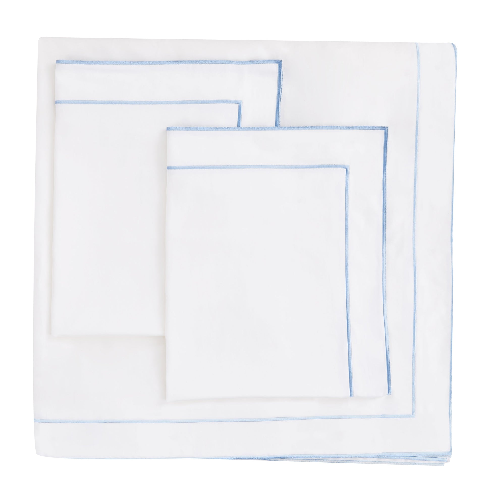 Our 600 thread count sateen sheet set is woven with extremely fine yet durable long staple cotton, producing an exceptionally smooth and soft sheet. We added an embroidered stripe edge to a simple framed embroidery for extra luxury and sophistication, and generously cut the fitted sheets to fit mattresses up to 18" deep. Exceptional quality and elegance, all at a comfortable price.