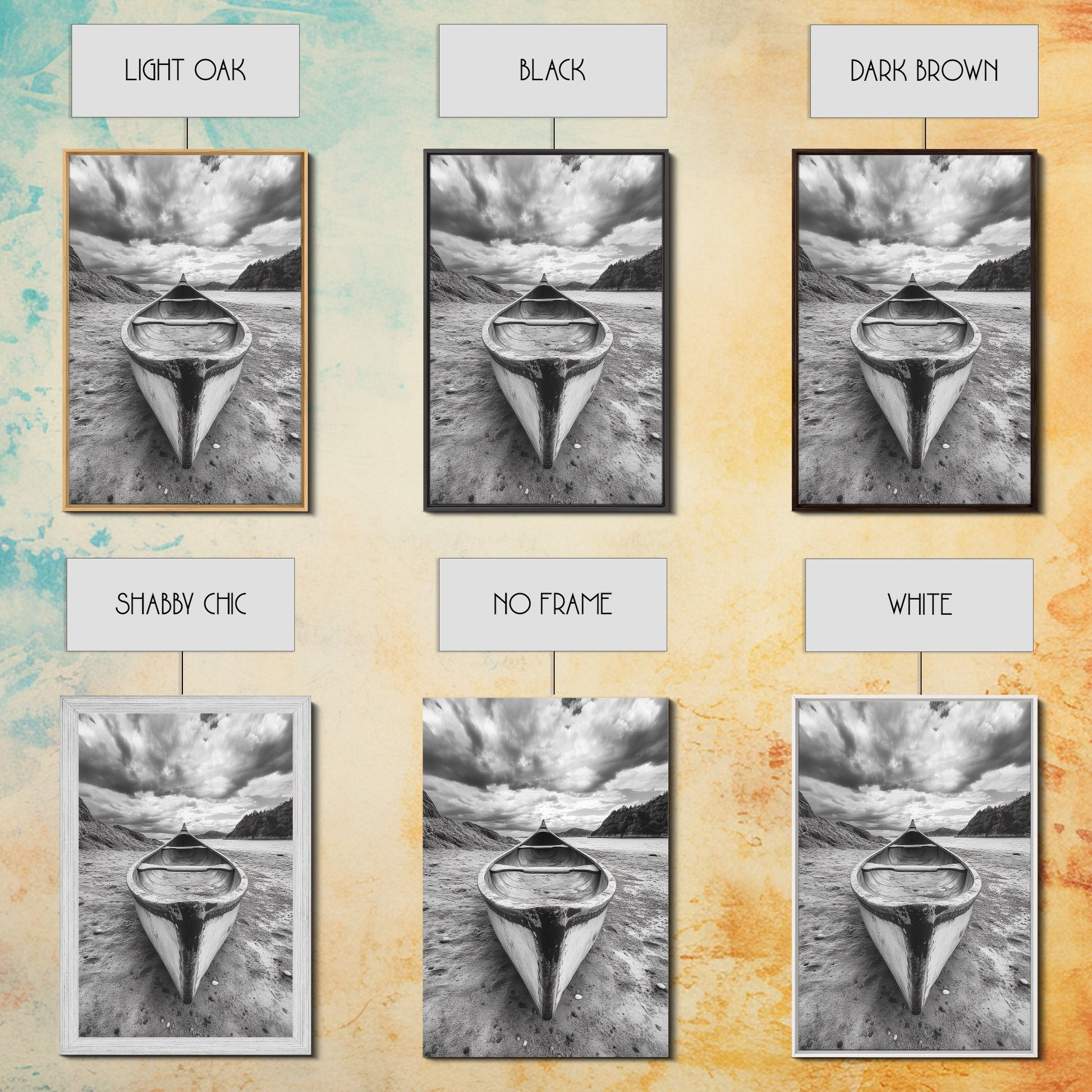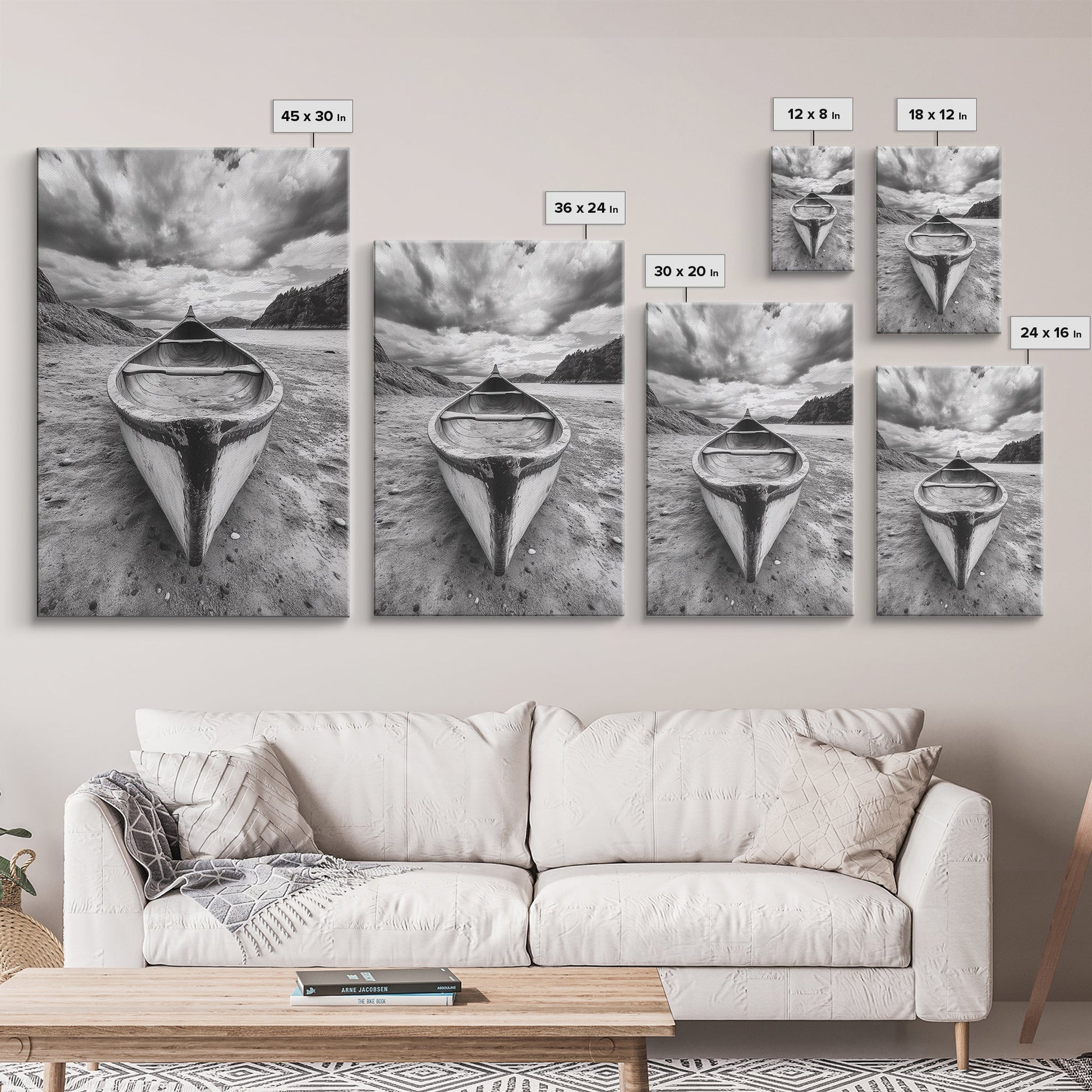 Canoe, Shoreline, Dramatic, Sky - canoe landscape Canvas Print, rustic wall art, entryway decor, nature photography, monochrome mountain