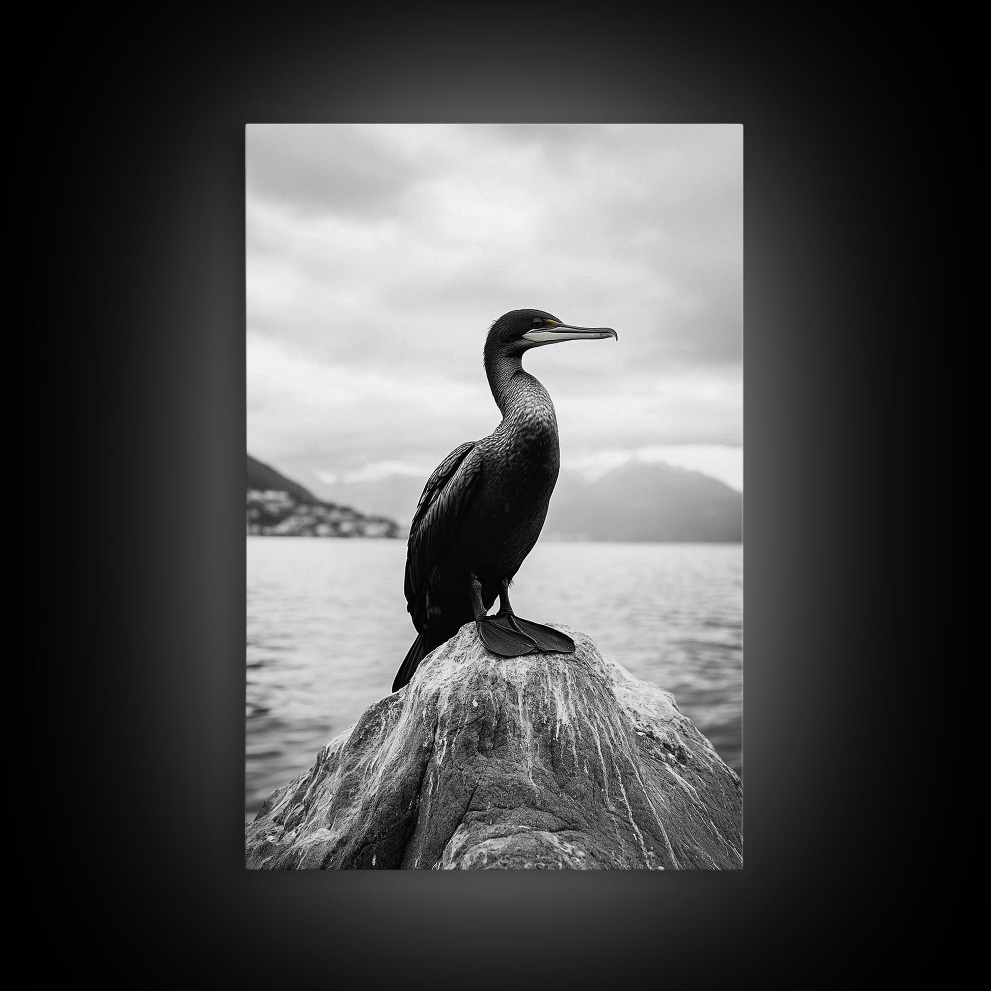 Coastal Bird Portrait, Nature Minimalism, Lake Decor, Monochrome Wildlife, Framed Canvas Print, Bedroom Wall Art, Bird Photography Print