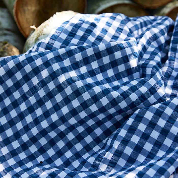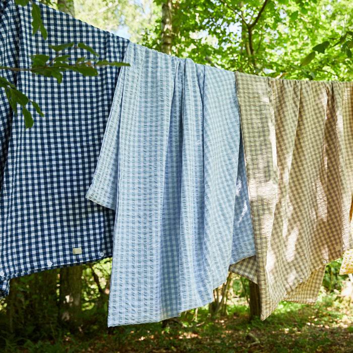 This set, in stylishly subdued dark blue and white gingham, is a classic, cool, and environmentally responsible addition to any bedroom.