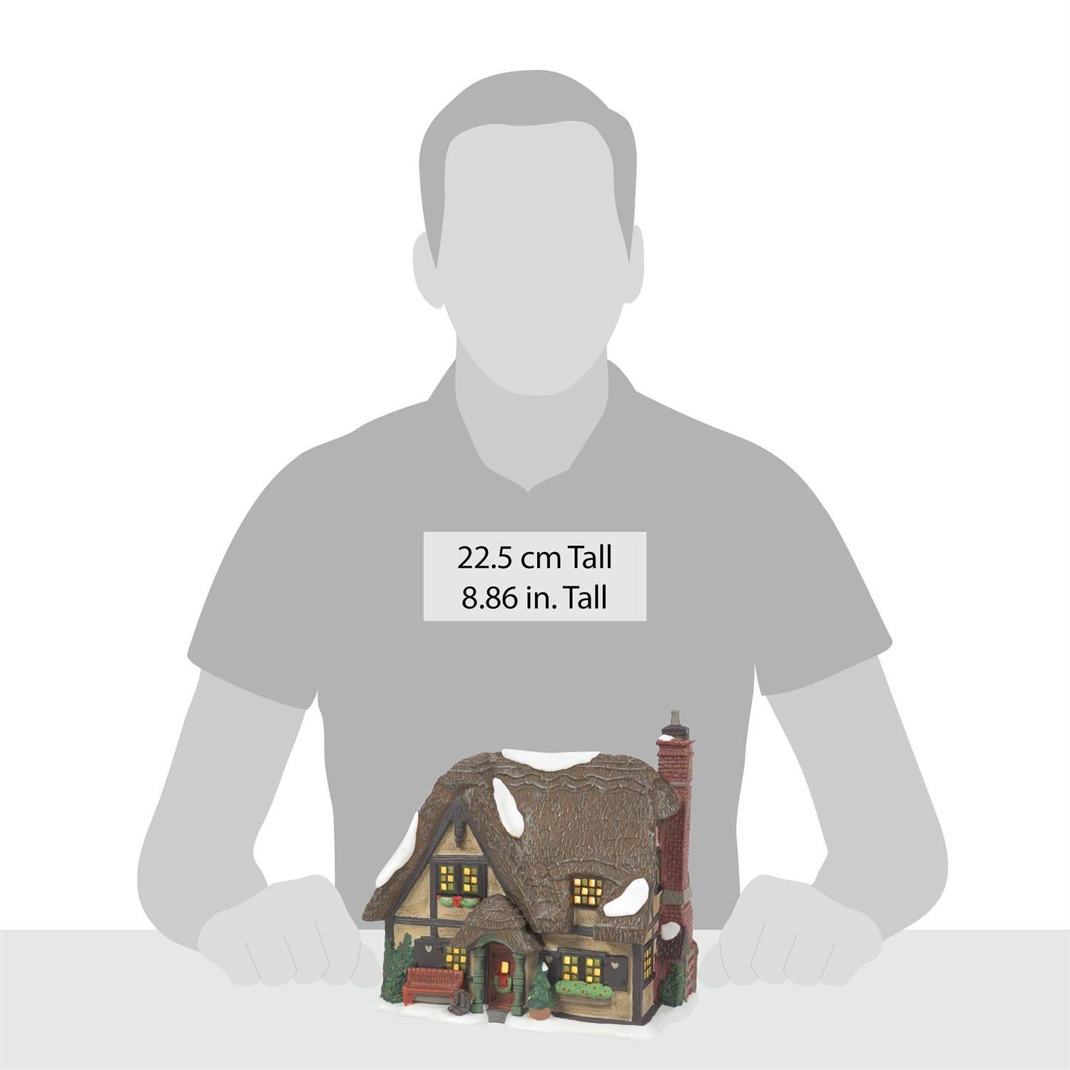 Transform your holiday celebrations with the charming "Master Thatcher’s Cottage" from Department 56! Standing at a delightful 6.5 inches tall, this beautifully crafted building showcases a lovely thatched roof dusted with snow, intricate detailing, and a heartwarming scene that invites cozy winter vibes into your home. Imagine the master craftsman proudly putting the finishing touches on his own home, just as festive spirit begins to bloom all around. This lighted gem not only brightens up your holiday display but also tells a rich story of craftsmanship steeped in tradition.