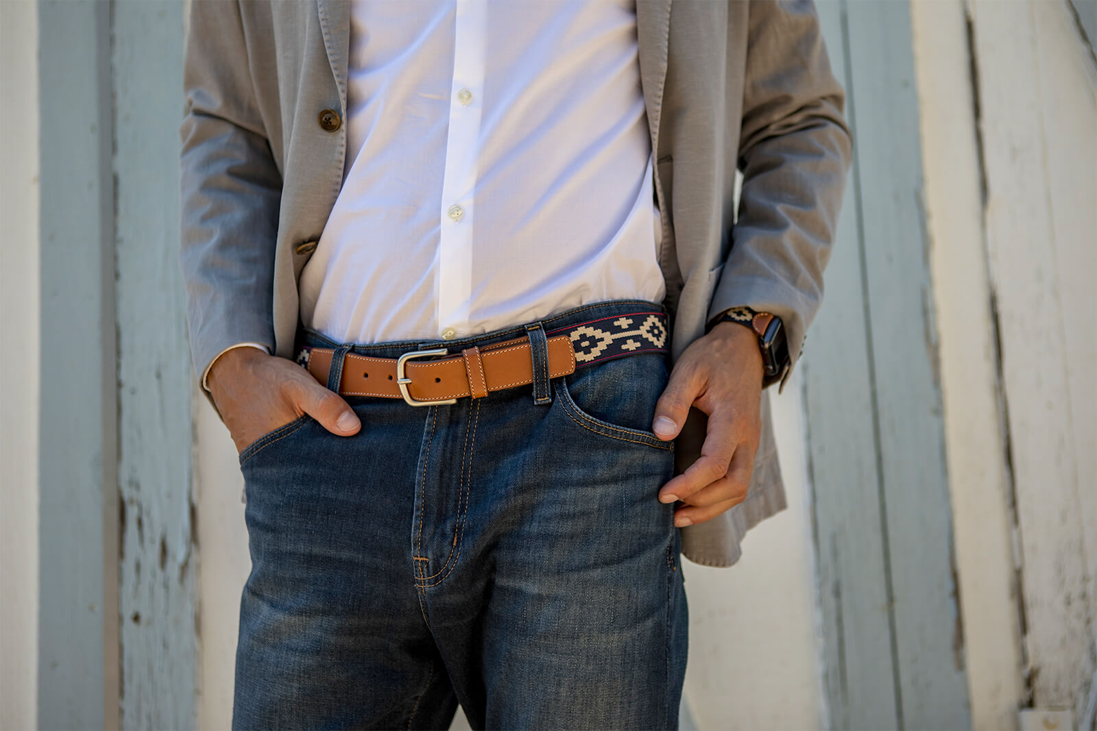 Experience the epitome of quality craftsmanship with our Paloma Woven Belt. Handwoven using beautiful Argentine fabric, each belt is meticulously hand-stitched onto genuine leather. Our leather undergoes a distinct conditioning process, ensuring it develops a unique patina over time, becoming a cherished addition to your wardrobe. Enjoy the unrivaled look and feel of our belts as they age gracefully, a testament to their enduring quality and timeless appeal.