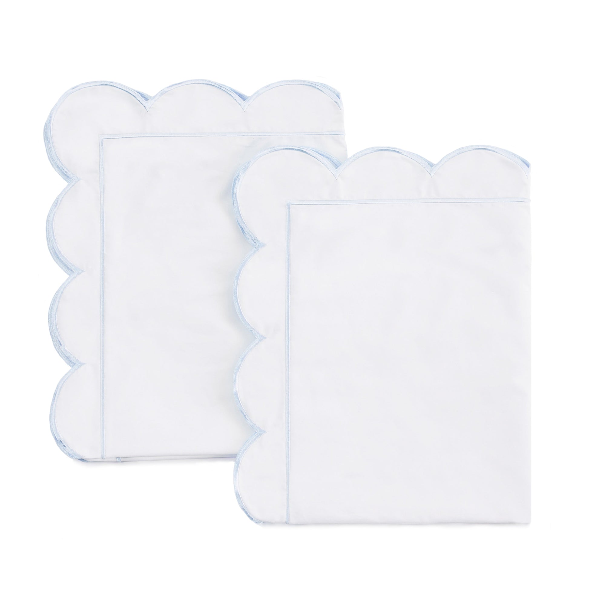 We weave our Percale bedding by laying one warp thread over one weft thread in a one-to-one ratio. This produces a fabric with a matte finish that is soft yet durable, crisp and cool to the touch. The single stripe frame is embellished with a scalloped edge for classic luxury and style.