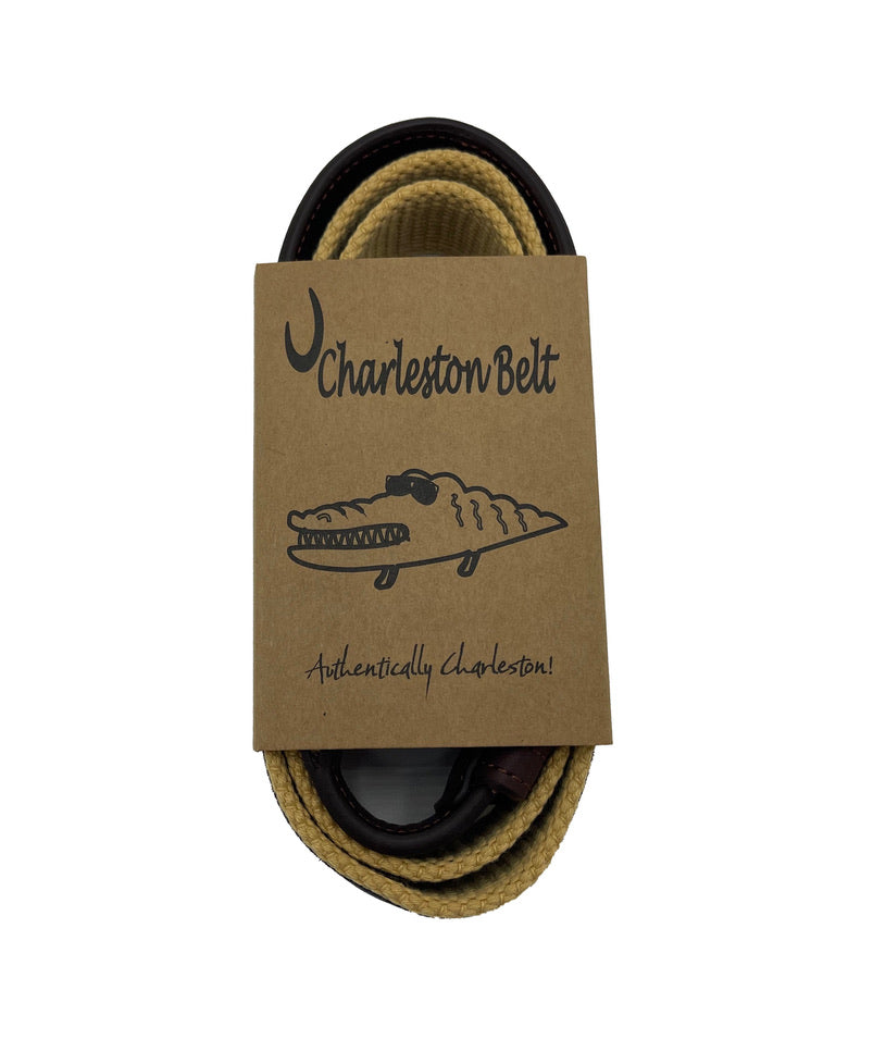 You'll really appreciate the navy canvas combination on this South Carolina Crescent Moon Palmetto State Flag belt! A perfect complement of colors, its premium 1 3/8" width further adds to its appeal. Brown leather tabs and brass buckle complete the look. The canvas fabric features 100% woven cotton for superior quality and durability. Artfully stitched onto navy blue fabric, the white crescent moon and palmetto tree insignia is true to the state flag. Additionally, brown top grain leather and a contrasting shade of stitching add extra detail. A perfect belt for all occasions, its 100% brass buckle and 1 3/8" width ensures comfort and style. From Charleston Belt & Suspenders, it's designed with natural fabrics and materials to bring out the spirit of our Southern roots and the richness of our diverse cultural heritage. For correct fit, add 3" to trouser waist size, then round up (larger) if odd.