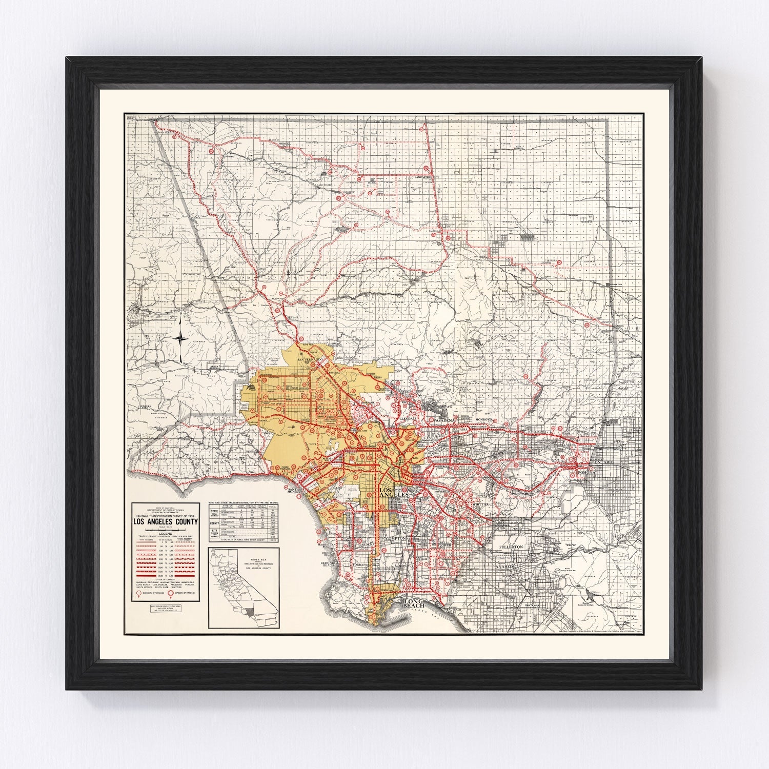 Vintage Map of Los Angeles County, California 1935
